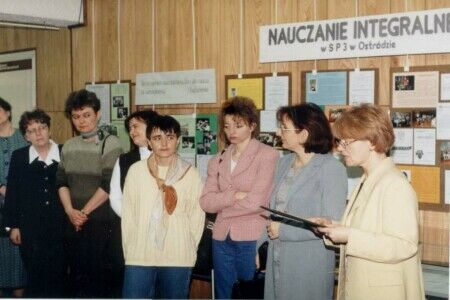 Statystyka w końcu roku 2000 wykazała 5.700 czytelników, z czego nauczyciele stanowią 35%. Wypożyczenia wahały się w ilości ok. 40 tysięcy rocznie. Warsztat informacyjno-bibliograficzny biblioteki jest obszerny, dobrze opracowany i zorganizowany. W formie tradycyjnej stanowią go kartoteki zagadnieniowe: pedagogiczna, literacka, bibliotekoznawcza i regionalna. W formie zautomatyzowanych baz danych wydział udostępnia bibliografie narodowe: Przewodnik Bibliograficzny i Bibliografię Zawartości Czasopism oraz własne bazy danych: pedagogiczną, regionalną, ekologiczną, bibliotekoznawczą oraz tworzony od 1995 roku katalog. W roku 2000 udzielono 5.500 porad bibliograficznych - liczba ta ma od lat wyraźne tendencje wzrostowe. Bogate, chętnie wykorzystywane przez nauczycieli jako pomoce dydaktyczne, materiały posiada Wydział Zbiorów Specjalnych. W roku 2000 zarejestrowano tam 6.300 odwiedzin. Wydział posiada bardzo dobrze zorganizowany warsztat informacyjny w postaci katalogu krzyżowego alfabetyczno-przedmiotowego. Powyższa charakterystyka placówki jest niepełna. Integralną częścią biblioteki wojewódzkiej są bowiem jej filie w miastach powiatowych. W-MBP w Olsztynie prowadzi 11 filii stanowiących część sieci bibliotek pedagogicznych województwa. Wybrane formy działalności W-MBP w Olsztynie na rzecz środowiska oświatowegoDo zadań statutowych bibliotek pedagogicznych, poza podstawowymi, tj. gromadzeniem, opracowaniem i udostępnianiem zbiorów, należy m.in. stwarzanie warunków do rozwoju zawodowego nauczycieli, pomoc w doskonaleniu oraz promowanie dorobku nowatorskiego nauczycieli. W-MBP w Olsztynie przez półwiecze istnienia wypracowała różne formy realizacji tych zadań. Jedną z nich, naszym zdaniem ciekawą, wartościową i oryginalną są wystawy autorskie nauczycieli nowatorów. Celem wystaw jest upowszechnianie twórczych dokonań nauczycieli województwa warmińsko-mazurskiego. Formuła wystawy zakłada obszerną prezentację oryginalnych dokonań najwybitniejszych pedagogów poprzez ekspozycję dokumentów ich kwalifikacji, etapów rozwoju zawodowego, stosowanych pomocy metodycznych, publikacji, wyróżnień, nagród, itd. Otwarciu wystawy towarzyszy spotkanie nauczycieli przedmiotu służące wymianie doświadczeń metodycznych, pedagogicznych i wychowawczych. Ekspozycja trwa 2-3 miesiące. Oglądają ją indywidualni czytelnicy (najczęściej nauczyciele i studenci) oraz zorganizowane grupy środowiska oświatowego. Ta forma pracy została zapoczątkowana w roku 1988 i jest kontynuowana do dzisiaj. Odnosimy wrażenie, że przyczynia się nie tylko do upowszechniania sylwetki twórczych nauczycieli, ale dla wszystkich jest mobilizacją do doskonalenia własnej pracy, do bycia poszukującym i pracującym niekonwencjonalnie pedagogiem. Inną formą działalności środowiskowej biblioteki pedagogicznej w Olsztynie jest upowszechnianie twórczości artystycznej pracowników oświaty. Inicjatywa zapoczątkowana 12 lat temu po kilku latach zyskała nazwę Galerii "Bakałarz". W "Bakałarzu" wystawiali swoje prace zarówno amatorzy-nauczyciele (niejednokrotnie budziło zdumienie to, iż nauczyciel np. języka polskiego może dodatkowo pięknie malować czy tkać), jak i profesjonalni plastycy olsztyńscy. Prezentowano obrazy olejne, akwarele, grafikę, fotografie, tkactwo artystyczne, witraże, rzeźbę. Prezentacja w "Bakałarzu" jest traktowana jako nobilitacja i zachęta do twórczej pracy. Dotychczas zrealizowano 60 wystaw indywidualnych oraz 11 zbiorowych, zwykle pokonkursowych, na których prezentowane są wyróżnione prace szkolnych konkursów plastycznych. Zaprezentowane formy przeszły pomyślnie konfrontację z czasem i widzami, toteż uważamy, że warte są opisania. KomputeryzacjaAutomatyzacja procesów bibliotecznych rozpoczęła się w naszej bibliotece pod koniec 1994 roku - zakupiliśmy wtedy pakiet MAK (na którego kolejnych wersjach pracujemy do dziś) i zaczęliśmy tworzenie i wdrażanie pierwszych baz danych. Obecnie prowadzimy następujące bazy: