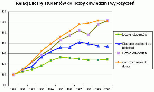 II. Pomiar i ocena rezultatów1. Narzędzia statystyczneBardzo szczegółowe dane statystyczne, obejmujące cały okres prowadzenia nowej polityki bibliotecznej, są pierwszym warunkiem jej oceny. Podstawą ich pozyskiwania jest coroczna ankieta - gromadzenie danych jest zinformatyzowane i odbywa się w trybie online. Stanowią one podstawę różnych opracowań opartych o główne parametry mierzalne i tworzenie rozmaitych zestawień. Dostępne są w dwojakiej postaci: