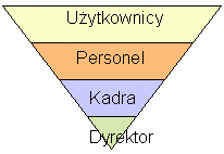 Popraw jakość pracy i wiedzę personelu Uważam, że nie ma nic pilniejszego w tej chwili i właściwie to nie mamy już czasu na czekanie i przyglądanie się innym, może za nas coś wymyślą. W Europie, jeśli narzeka się na Polaków, to głównie wskazuje się na złą organizację pracy, marnotrawienie zasobów i wysiłków ludzkich, natomiast o potencjale Polski mówi się dobrze. Powinniśmy wziąć to sobie do serca. Poprawiając jakość naszej pracy - poprawiamy nasze instytucje i nasz przyszły los. Koniecznie trzeba zacząć zmiany od poprawy świadomości zespołu. W funduszach strukturalnych jest wiele pieniędzy na szkolenia kadr, bo problem ten nie dotyczy tylko bibliotekarzy, ale całego społeczeństwa. Nasze postawy są często tak nieprzystające do rzeczywistości, że nawet nie bardzo wiadomo, jak z nimi dyskutować. Zdumiewa mnie fakt, że po 10 latach transformacji można jeszcze żywić przekonanie, iż nabyta 20 lat temu wiedza bibliotekarska wystarcza, żeby zapewnić nowoczesnej bibliotece dobre funkcjonowanie. Otóż nie wystarcza i na dodatek potrzebna jest inna wiedza, z bibliotekarstwem do tej pory niezwiązana, a niezbędna dziś dla zapewnienia wysokiej kultury organizacyjnej instytucji i jakości jej usług. Może wystarczy za przykład porównanie, jakiego dokonał na konferencji zatytułowanej Public relations w bibliotekach Rafael Ball: [5] W wielu bibliotekach funkcjonuje układ, który nadaje najwyższą wagę wszystkiemu, co mówi i realizuje dyrektor, a potem bibliotekarz. Natomiast to, co mówią i czego potrzebują użytkownicy jest na samym dole. Czy tak powinna działać nowoczesna biblioteka?