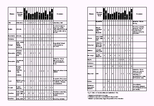 Zależności pomiędzy oferowanymi funkcjami i metadanymi można przedstawić za pomocą matrycy (patrz rys. 2). Matryca ta będzie stale rozbudowywana i dostosowywana do zmian technologicznych i innych nowych rozwiązań wprowadzanych do projektu TEL (np. dodawanie nowych zbiorów o specjalnych wymogach). Dlatego też matryca ta jest niepełna i służy jedynie jako punkt wyjścia dla dalszych rozwiązań. Nie wszystkie funkcje przedstawione na tej matrycy będą dostępne w tym serwisie od razu po uruchomieniu go. Należy rozróżnić pomiędzy metadanymi w portalu TEL oraz tymi, które są wykorzystywane jedynie w usługach końcowych, gdyż nie należą one do profilu aplikacyjnego TEL. W portalu TEL mogą być pominięte metadane pochodzące z rekordów metadanych nienależących do tego profilu aplikacyjnego. Może też być sygnalizowane występowanie takich metadanych, zależnie od tego, jaki rodzaj prezentacji został wybrany. Opisy na poziomie zbiorówW serwisie TEL zbiory będą odgrywały zasadniczą rolę. Można nawet nazwać TEL „zbiorem zbiorów”. Ze względu na to, że ilość zbiorów może bardzo wzrosnąć, użytkownik serwisu TEL powinien mieć możliwość szukania danego zbioru w ten sam sposób, w jaki będzie szukał obiektów. Dlatego też, oprócz profilu aplikacyjnego dla obiektów, zastosowano dodatkowo profil aplikacyjny dla zbiorów. Ten profil umożliwia wyszukiwanie metadanych opisujących zbiory (opisy na poziomie zbiorów), co pozwala nie tylko przeszukiwać dany zbiór, ale także szukać samych zbiorów. Jeśli dany zbiór otrzymamy w wyniku wyszukiwania, to może on stać się celem wyszukiwania, tak aby użytkownik mógł zacząć nowe wyszukiwanie w tym właśnie zbiorze. W ramach Research Support Libraries Programme (RSLP) zainicjowano szereg projektów badawczych dotyczących opisów na poziomie zbiorów. Szczegółowe badania na ten temat prowadził też Michael Heaney