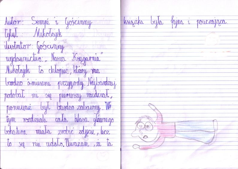 Uczniowie bardzo chętnie czytają książki, których bohaterami są ich rówieśnicy. Hitem w tej klasie okazały się przygody Koszmarnego Karolka Francesci Simon. Tytuły z tej serii pojawiły się zarówno wśród książek ulubionych, jak i wśród wpisanych do zeszytów lektur. Są to opowiadania o chłopcu, który był nieznośny, uparty, niegrzeczny i bardzo koszmarny (Ola i Ada). Jeden z uczniów poleca kolegom tę właśnie książkę ponieważ są w niej opisane ciągle kłótnie (Wojtek). Kolejnym literackim idolem dzieci okazał się Mikołajek Rene Goscinnego. Mikołajek ma bardzo śmieszne przygody. Najbardziej podobał mi się pierwszy rozdział, ponieważ był bardzo zabawny. W tym rozdziale cała klasa głównego bohatera miała zrobić zdjęcie, lecz to się nie udało (Gabrysia). Podobnie jak przy poprzedniej serii przygody tytułowego Mikołajka są, według dzieci, wesołe, zabawne i śmieszne. Nie potrafiły jednak uzasadnić swojej opinii.