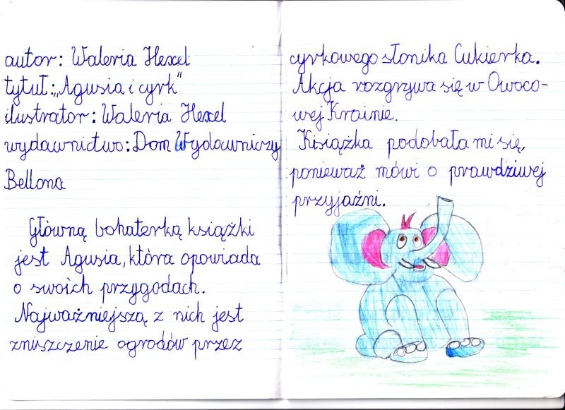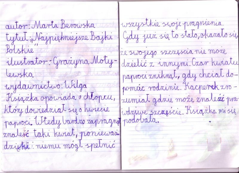 w zeszytach lektur i w pisemnych wypowiedziach na temat ulubionej książki