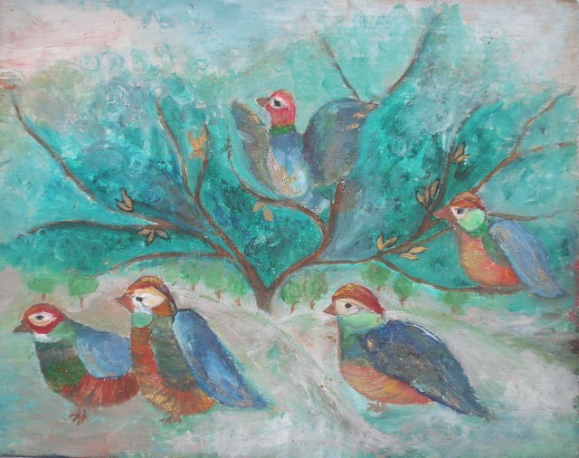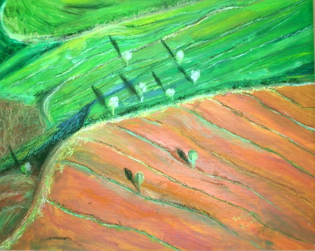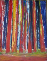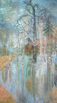 Tematyka też na różnych etapach jest inna. Pejzaże, ikony, desenie, abstrakcje. Najdłuższy etap miałam z drzewami; cokolwiek zaczynałam malować, ale i tak w efekcie wyłaniało się drzewo. Portrety? Bardzo lubię, ale trzeba mieć więcej czasu, łatwiej jest sprawić portret osobie, którą się zna. Wpatruję się w nowopoznane osoby, a jeszcze lepiej, gdy mogę z nimi rozmawiać i sama nadawać temat, mam takie możliwości, gdyż w radiu, w którym pracuję, od dwunastu lat przeprowadzam wywiady z ludźmi o różnych profesjach, poglądach, zainteresowaniach. Kiedyś obserwowałam twarze w czasie koncertów, staram się już tego nie robić, bo zorientowałam się, że sprawiam tym wrażenie zainteresowania osobistego.
