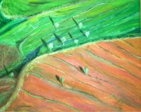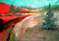 Tematy podpowiada mi otoczenie, a najwięcej przyroda. Z wędrówek po górach, które odbywam z całą rodziną, przywożę zatrzymane w pamięci obrazy - to oczywiście inspiracje. Mam trudności z zapamiętaniem światła, jakim był ogarnięty obiekt, który chciałabym namalować. Kiedyś nie ruszałam się bez aparatu fotograficznego, robiłam przezrocza, to bardzo mi pomagało. Technika pomaga we wszystkim i może dorobię się cyfrówki, wtedy będę szaleć pędzlem i kolorami, a moje prace będą rozświetlone. Z kolorami to też ciekawa sprawa, bo na różnych etapach życia mam potrzebę malowania określoną gamą, np. zaczynam sieną paloną, ochrą i podobnymi, a i tak kończę burgundem, i błękitem paryskim, czyli bardzo ciemnym granatem.