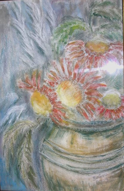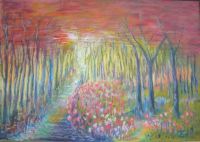 Kiedyś zapytano mnie, skąd się wzięło w moim życiu malowanie? Myślę, że duża zasługa w tym mojej mamy, która cierpliwie znosiła moje paćkanie. Gdy byłam chora, a w dzieciństwie często chorowałam, mama pozwoliła mi narysować na świeżo wypastowanej podłodze grę "w klasy", a szkiełkiem był mały kafelek z mozaiki stoliczka. Grałyśmy z siostrą i do dzisiaj pamiętam ten zielony kafelek, który zwinnie trafiał tam, gdzie chciałam. Mamę kolejno uszczęśliwiałam malowankami po meblach i ścianach. Moim królestwem była weranda, gdzie kolory rozświetlały się. Prace plastyczne robiłam też z gipsu, przy otwartych oknach i powiewie wiatru. Nie opiszę, co mama musiała wtedy znosić! Tak, więc malowałam od zawsze bardzo różnymi technikami, używając wszystkich dostępnych materiałów i tak jest obecnie.