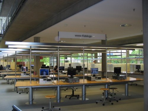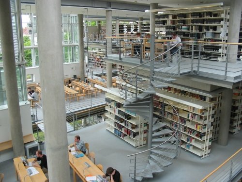 Dwa kolejne piętra to różnego rodzaju czytelnie, książki i czasopisma w wolnym dostępie (ogółem 1,5 ml vol.), przetykane miejscami do pracy. W tej przestrzeni mieszczą się również sale seminaryjne i 60 cichych miejsc pracy.