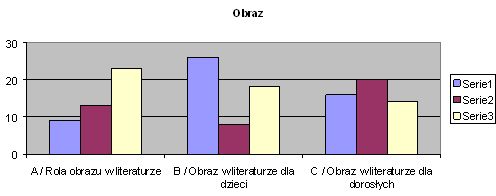 A / Stosowanie środków obrazowych w literaturze rodzi następujące skutki: 1 - może (ale nie musi być) być kiczem; 2 - metafora podnosi wartość literatury; 3 - metafora to naturalny środek ekspresji w literaturze Problemy badawcze przedstawione na wykresie 3 zostały celowo dobrane do badanej populacji. Grupę respondentów stanowili przede wszystkim bibliotekarze i stąd pytania o to, jaką rolę w tekście pełnią obrazowe środki wyrazu. Jeśli weźmie się pod uwagę walkę o nieskazitelność słowa (o czystą jego formę), jaką prowadzą np. Tadeusz Różewicz, Maria Janion czy Czesław Miłosz, to może budzić zdziwienie tak powszechne mniemanie (80%) o nieodzowności używania metafor w tekście literackim. Jest to z pewnością sygnał, że zapasy wspomnianych mistrzów z materią słowa są sztuką na tak wysokim poziomie, iż jest ona zbyt trudna i elitarna, aby mogła dotrzeć do ludzi uczestniczących w kulturze na poziomie średnim. Obcowanie z językiem Różewicza czy Gombrowicza jest bardziej demonstracją dobrego tonu niż rzeczywistej potrzeby. W niektórych komentarzach do pytań znalazły się powątpiewania - czy rzeczywiście czystość sztuki (w tym literatury) jest jej wartością najwyższą. Oznacza to według respondentów, że dodatkowe elementy języka (metafora, parabola, onomatopeja i in.) są koniecznymi elementami składowymi i świadczą o jego rozwoju. Ciekawego materiału badawczego dostarczyły opinie na temat ilustracji w książkach. Wszyscy respondenci uważają, że ilustracje w książkach dla dzieci są elementem wręcz niezbędnym, wspomagającym wyobraźnię dziecka. Opinie o ilustracjach w książkach dla dorosłych są natomiast podzielone. Przy takim rozłożeniu głosów można by wyciągnąć wnioski (z gruntu fałszywe) przemawiające za tym, że wyobraźnia dziecka jest uważana za uboższą od wyobraźni dorosłego i dlatego proponuje się wspomaganie jej gotowymi wyobrażeniami. Prawdopodobnie dochodzi tu do głosu przeświadczenie dorosłych o ich większych możliwościach projekcyjnych i mądrości biorącej się z doświadczenia (co jest niewątpliwie prawdą). Wnioski: