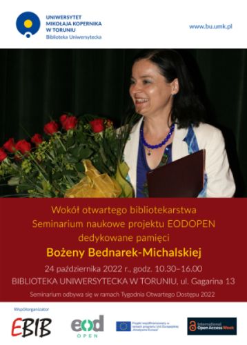 dedykowane pamięci Bożeny Bednarek-Michalskiej „Wokół otwartego bibliotekarstwa”, które odbędzie się 24 października br. w Bibliotece Uniwersyteckiej w Toruniu, w ramach Tygodnia Otwartej Nauki.