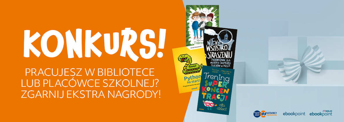 Bibliotekarzy z bibliotek szkolnych i publicznych zachęcamy do udziału w konkursie w ramach akcji RATOWNICY CZYTELNICTWA. Do uzyskania pakiety książek dla Twojej placówki, dostępy do cyfrowej biblioteki oraz czytelnicze gadżety!