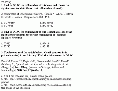 Aby uczynić ją miejscem bardziej otwartym dla czytelników proponowano, by Biblioteka była otwarta do godziny 24:00 - również w weekendy, by więcej osób mówiło po angielsku, by funkcjonowała na miejscu wypożyczalnia dla studentów anglojęzycznych, postulowano również utworzenie specjalnej czytelni dla tej grupy studentów (zamkniętej dla innych użytkowników). Oprócz tego sugerowano: stworzenie "otwartej przestrzeni", zakup kanap i ustawienie ich w całym budynku, udekorowanie czytelni. Ponadto studenci uznali, że należałoby zakupić więcej książek "po angielsku" (na pytanie o tytuły pojawiały się wyłącznie książki z literatury pięknej). Jak widać na podstawie ankiety studenci Oddziału Anglojęzycznego tworzą bardzo trudną grupę użytkowników. Z jednej strony mają dość wygórowane oczekiwania dotyczące oferty biblioteki naukowej, z drugiej trudno jest ich do niej przyciągnąć, ponieważ nie widzą potrzeby korzystania z oferowanych usług. Niejako z góry zakładają, że nic ciekawego w niej dla siebie nie znajdą. Zajęcia zmieniły te przeświadczenia na tyle, na ile można było przełamać w ciągu tak krótkiego czasu pewne stereotypy na ten temat. Przyszłość szkoleń: e-learning?Wydaje się więc, że pomimo dość dużego odsetka krytycznych ocen, należy kontynuować kształcenie w dotychczasowej formie, co zmusi tę grupę użytkowników do poznania biblioteki "w realu". Uatrakcyjnieniem zajęć może być wprowadzenie nowej formuły łączącej tradycyjne spotkania w bibliotece z nauczaniem zdalnym z wykorzystaniem e-learningu. W takiej opcji można byłoby wprowadzić różne modyfikacje dotyczące tematyki i formy zajęć. Spotkanie pierwsze miałoby dotychczasowy charakter, tj. łączyłoby wstępny wykład ilustrowany prezentacją multimedialną z wycieczką po poszczególnych agendach biblioteki. Wtedy też uczestnicy otrzymywaliby podstawowe informacje na temat zdalnego nauczania wraz z hasłem dostępu do kursu. Jego dalsza część mogłaby odbywać się zdalnie, w dogodnym dla studentów czasie. Warunkiem zaliczenia kursu byłoby uzyskanie niezbędnej wiedzy na temat funkcjonowania biblioteki i jej oferty, co zostałoby potwierdzone przez poprawne wykonanie zadań sprawdzających. Etap ten mógłby zamknąć się w ciągu 5 tygodni. Otrzymanie zaliczenia wiązałoby się z koniecznością ponownego przyjścia do biblioteki. Studenci mogliby w razie problemów zwrócić się o pomoc do instruktora prowadzącego kurs za pomocą e-maila, odwołać się do informacji na forum (z dostępem tylko dla osób uczestniczących w danej edycji kursu) lub osobiście zjawić się w bibliotece. W tym wypadku należałoby również zmodyfikować treści proponowane na kursie - poszerzyć informacje na temat interesujących adresów stron www, przydatnych studentom medycyny, po konsultacji z nauczycielami innych przedmiotów wprowadzić instrukcję obsługi e-booków, jako wersji on-line podręczników (co może jest zaskakujące - większość ze studentów z tego rodzaju podręcznikami nie miała kontaktu i nie bardzo wie, jak z nich efektywnie korzystać). Istotnym elementem byłoby tu także zmotywowanie studentów do prowadzenia własnych poszukiwań interesujących stron w sieci i dyskusja na ich temat na forum. Informacje na temat medycznych baz danych zostałyby włączone do części poświęconej analizie strony internetowej biblioteki. Poszukiwanie literatury fachowej na szczegółowe tematy ograniczone zostałoby do pracy w PubMedzie (z użyciem słów kluczowych i MeSH-a), a jednym z zadań byłoby praktyczne wykorzystanie PubMedu do poszukiwania literatury na zadany temat. Brzmi to może dość niezwykle, jako że prowadzenie zajęć on-line nie jest może najpopularniejszą w tej chwili formą pracy z czytelnikiem (zwłaszcza tak trudnym, jak studenci Oddziału Anglojęzycznego). Wydaje się jednak, że po pokonaniu początkowego oporu ze strony samych studentów i ich opiekunów, jak i trudności wynikających z samego przygotowania szkolenia on-line i prowadzenia go po angielsku - kursy w tym kształcie mogą w znacznym stopniu ułatwić pracę w samej bibliotece: zajęcia nie będą musiały odbywać się w Dziale Informacji (co może dezorganizować pracę), dostęp do kursu nie będzie ograniczony godzinami otwarcia biblioteki, liczba osób uczestniczących w poszczególnych edycjach może być dużo większa niż pozwalają na to ograniczone warunki lokalowe biblioteki. Nie bez znaczenia jest też element budowania wizerunku instytucji jako bardzo nowoczesnego centrum szkoleniowego, co może przyczynić się do przełamania pewnych stereotypowych opinii panujących na ten temat wśród studentów. Oczywiście model taki może być stosowany również w przypadku szkoleń w języku polskim, tu jednak na przeszkodzie mogą stanąć kwestie bardzo prozaiczne, np. brak dostępu studentów do Internetu czy nawet do komputera. Reasumując, należy stwierdzić, że szkolenie grup obcojęzycznych stanowi duże wyzwanie organizacyjne dla biblioteki i osobiste dla instruktora, który je prowadzi. Problem zagadnień, jakie powinny zostać przedstawione w trakcie takiego kursu ,pozostaje otwarty - wydaje się, że należy jednak prezentować (mimo pewnego niezrozumienia ze strony studentów) medyczne bazy danych i sposób ich wykorzystania, choć może w mniejszym niż dotąd zakresie, zaś zwiększyć ilość czasu przeznaczonego na szeroko rozumianą ofertę adresowaną do studentów medycyny, jaką może być dostęp do wartościowych stron www. Przekształcenie kursu z tradycyjnego szkolenia w formę hybrydową, łączącą kurs on-line z tradycyjnym wykładem może bardzo uatrakcyjnić te zajęcia z punktu widzenia nawet tak wymagającej grupy użytkowników, jakimi są studenci Oddziału Anglojęzycznego. Przypisy[1] CRITERIA FOR READING CRITICALLY: 1. What are the credentials of the author?, 2. What is the author's point of