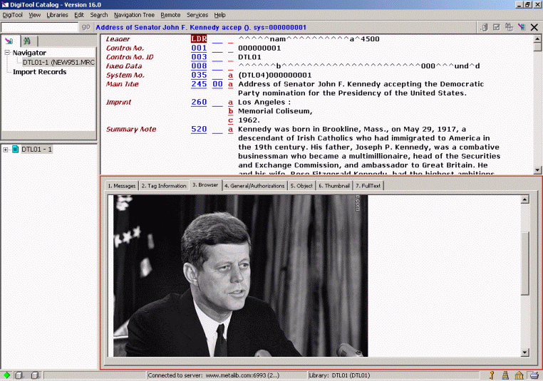 - DigiTool zarządza elementami składającymi się z obiektów cyfrowych, metadanych opisowych oraz metadanych technicznych