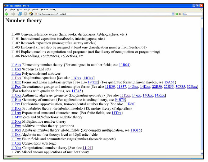 W porównaniu z 268 poddziałami w MSC nie jest to zbyt zróżnicowany poziom, a już na pewno nie jest poziomem różnicującym poważną literaturę matematyczną w zakresie teorii liczb. Warto w tym miejscu zauważyć: komu potrzebne są matematyczne hasła w języku KABA: