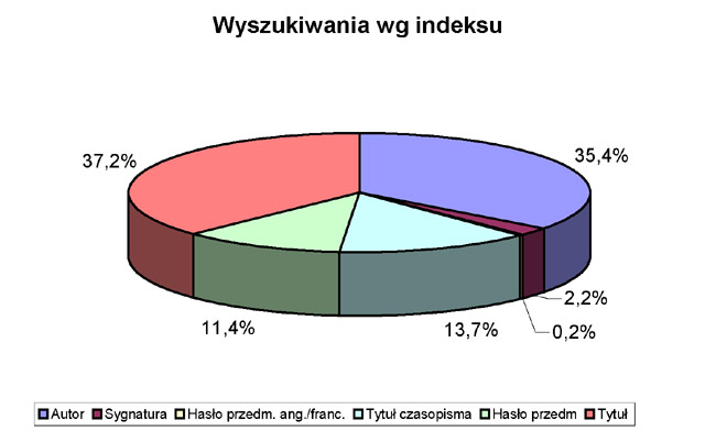 Wyszukiwanie wg indeksu jest wyszukiwaniem podstawowym (wyszukiwania zaawansowane czy wg słów kluczowych są trudniejsze), zresztą ekran z indeksem pojawia się jako pierwszy. Ekrany słowa kluczowe w hasłach (13 na 11692) czy zaawansowane (11 na 11692) to tylko bardzo niewielki ułamek wszystkich wyszukiwań. Wyniki te świadczą o małej wiedzy dotyczącej możliwości wyszukiwania przez użytkowników katalogów komputerowych.