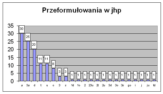 Rys. 10. Rodzaje przeformułowań w jhp KABA