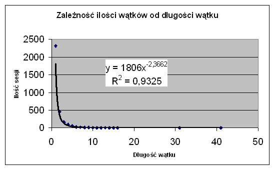 Analizując materiał, jak często pojawiają się wyszukiwania o długich wątkach, zauważyliśmy prawidłowość bardzo zbliżoną do I prawa Zipfa.