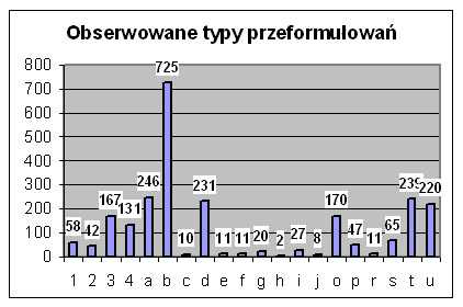 Rys. 7. Obserwowane rodzaje przeformułowań.
