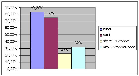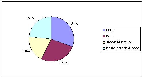 Wskazuje to na mniejszą popularność wyszukiwania według słów kluczowych i haseł przedmiotowych, której przyczyny zostaną omówione przy analizie kolejnych punktów ankiety.