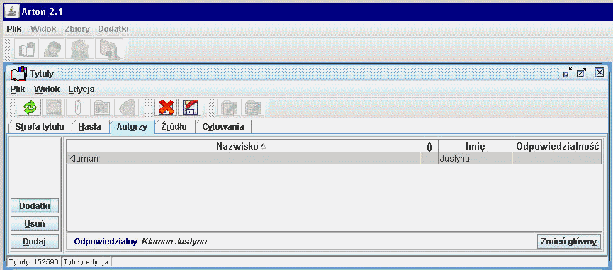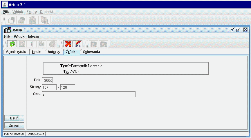Rys. 5. Moduł operatora bazy (pole – cytowania)