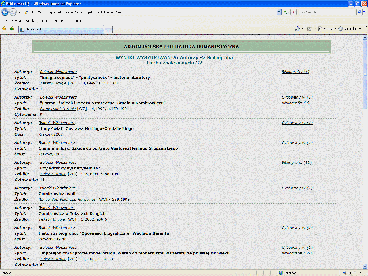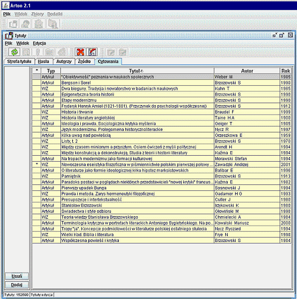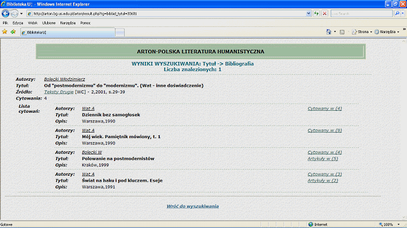 Źródło: opracowanie własne na podstawie Polska Literatura Humanistyczna Arton [on-line]. [Dostęp 5 maja 2009]. Dostępny w World Wide Web: